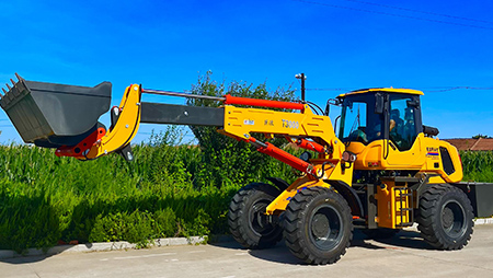 連接復合動作一拖二操作手柄,簡介易操作由于它具有共同的結構,前端是裝載設備,后端為發(fā)掘設備。在施工時,操作手只需求翻滾一下座椅,就可以結束從裝載機到發(fā)掘機的改動